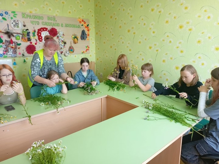 В ГБУ «КЦСОН Краснобаковского муниципального округа» совместно с учениками МАОУ СОШ № 2 р.п. Красные Баки прошел мастер-класс по плетению венка из полевых цветов, приуроченный к празднику «День семьи, любви и верности!»