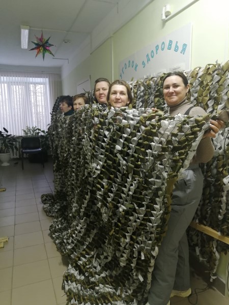 ГБУ «КЦСОН Краснобаковского муниципального округа» продолжает активно выполнять работу по оказанию помощи участникам СВО, за эту неделю мы изготовили 2 маскировочные сети, 154 штук сухого душа, пошили 10 пар мужского нательного белья для госпиталей и связали 7 пар теплых носков. Сотрудники Учреждения продолжают обучать плетению маскировочных сетей. В этот раз мастер-класс был проведен для жителей д. Большое Поле Воскресенского муниципального округа.
