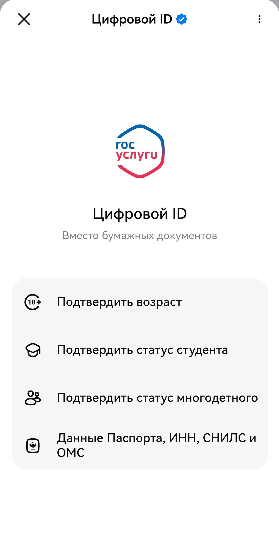 Аналог бумажных документов - цифровой ID - позволяет подтверждать возраст, статус студента, многодетного родителя и многое другое посредством динамического QR-кода в профиле мессенджера.